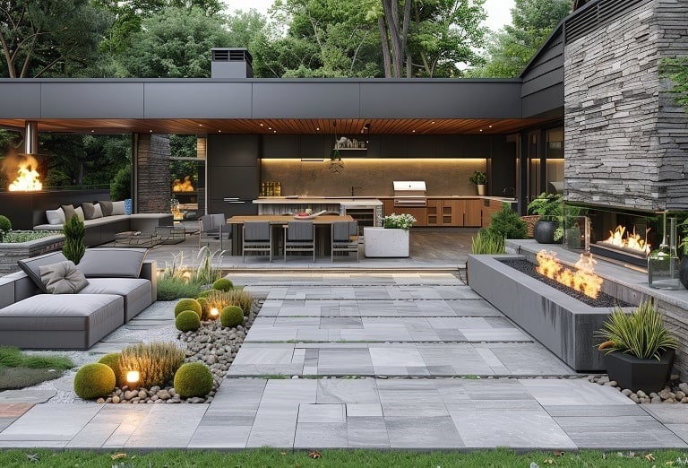 Transform your outdoor space with stone, wood, and water features